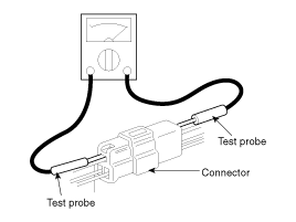 разъема, вставьте тестовый щуп со стороны жгута проводов. Если
