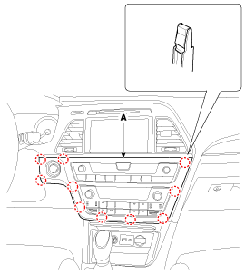 Снимите обогреватель и контроллер кондиционера (А) с центральной приборной панели.