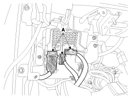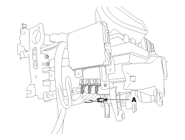 Отсоедините разъем (А) модуля управления подушками безопасности (SRSCM).