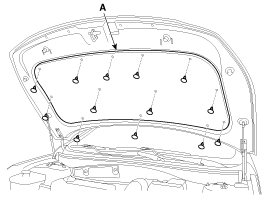 Используя съемник зажимов, отсоедините зажимы и снимите изоляционную прокладку капота (А).