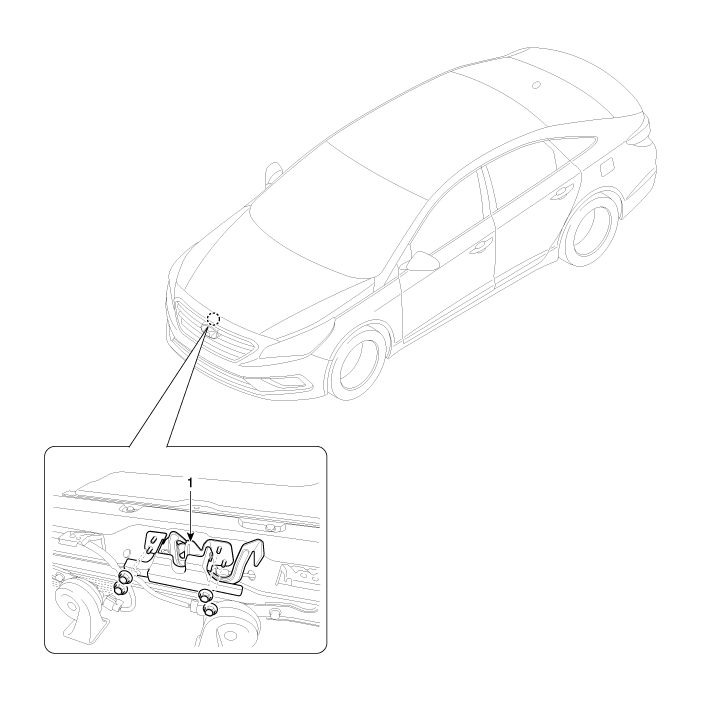 Hyundai Sonata LF 2014-2019 Руководство по ремонту / Кузов (внутри и снаружи) / Капюшон / Компоненты замка капота и расположение компонентов