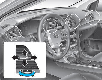 Кроме того, вы можете отрегулировать направление воздуха, подаваемого из этих вентиляционных отверстий, с помощью рычаг управления вентиляцией, как показано на рисунке.