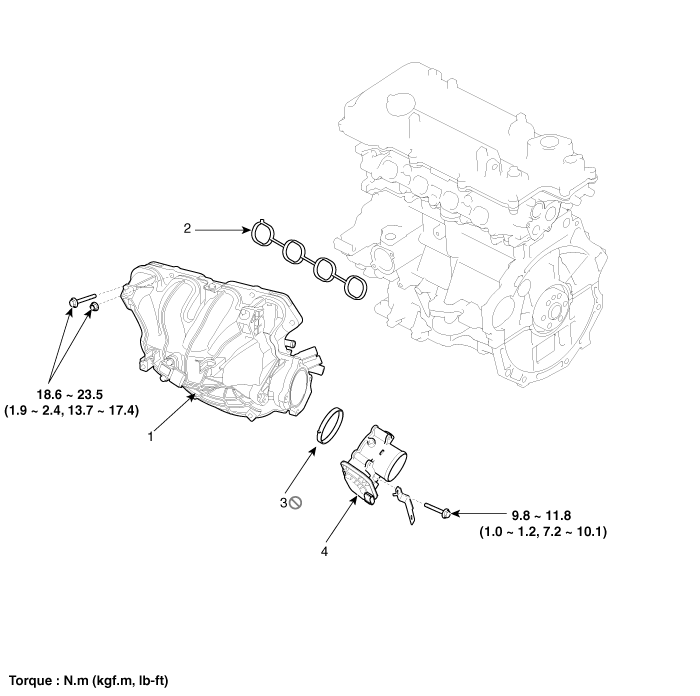 Hyundai Sonata: система впуска и выпуска / расположение компонентов и компонентов впускного коллектора