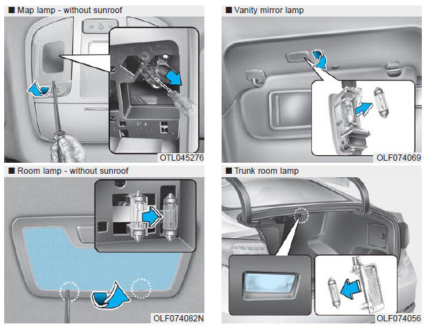 Если лампы не работают, обратитесь в авторизованный сервисный центр HYUNDAI для проверки автомобиля. дилер.