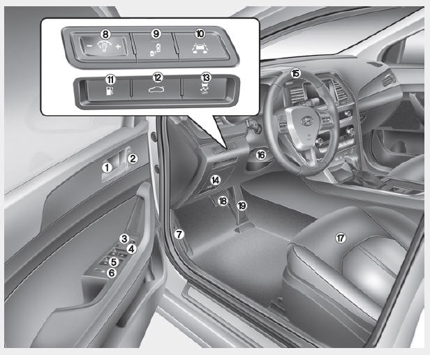 Руководство по обслуживанию Hyundai Sonata LF 2014-2019: Комплектующие и расположение узлов