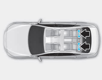 Анкеры LATCH были предусмотрены в левом и правом боковых задних сиденьях. позиции. Их расположение показано на рисунке. Анкеров LATCH нет предусмотрено для среднего заднего сиденья.