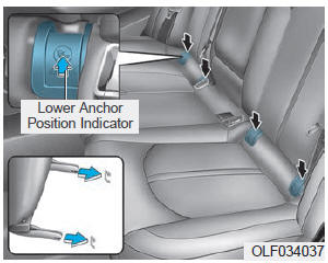 Анкеры LATCH расположены между спинкой сиденья и подушкой сиденья. заднее сиденье левое и правое боковые места для сидения.