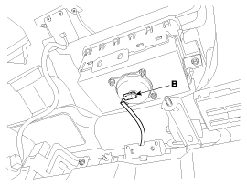 Отсоедините разъемы подушки безопасности пассажира (В).