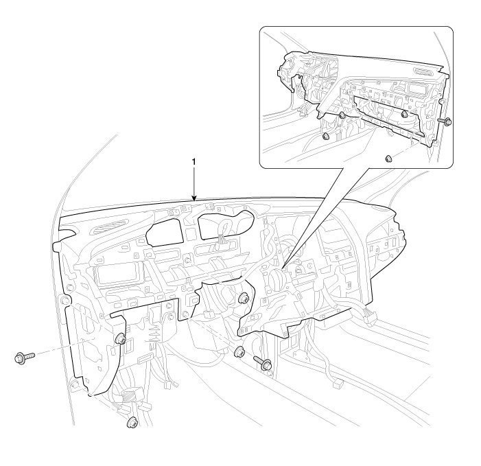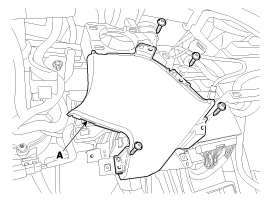 Ослабив крепежные винты, снимите верхнюю панель аварийного щитка [LH] (A).