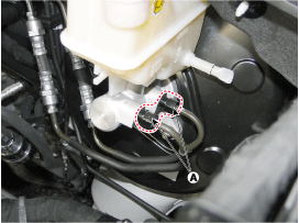 Отсоедините разъем выключателя уровня тормозной жидкости (А).