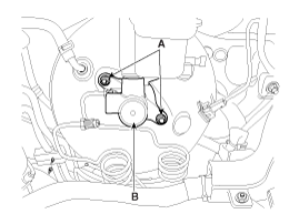 Снимите главный цилиндр (В) с усилителя тормозов, предварительно ослабив крепежные гайки (А).