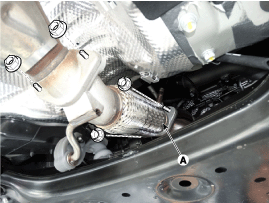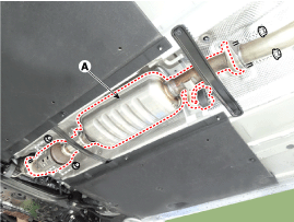 Снимите каталитический нейтрализатор и центральный глушитель (А).