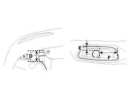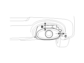 Запишите зазор (A, B, C, D, E, F) между выхлопной трубой (или облицовкой хвоста) и задним бампером.
