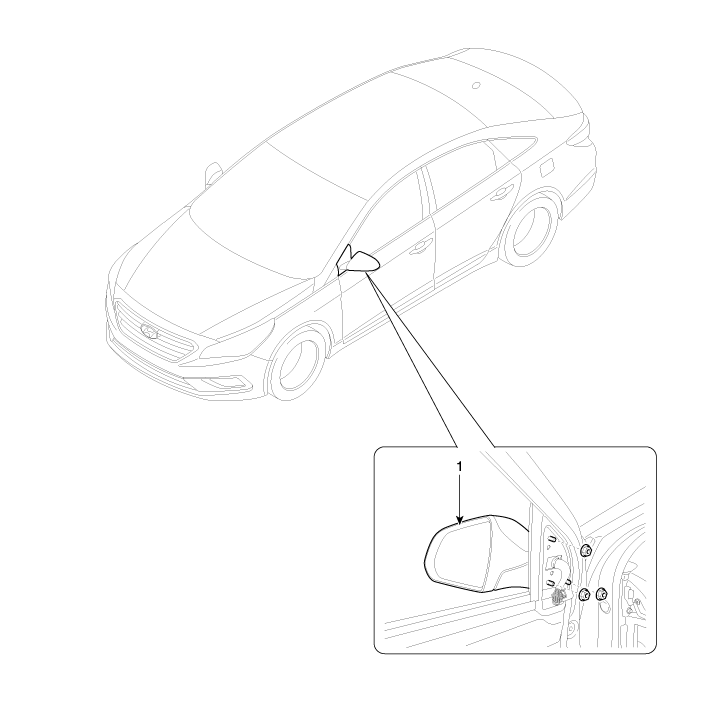 Hyundai Sonata LF 2014-2019 Руководство по ремонту / Кузов (внутри и снаружи) / Зеркало / Компоненты наружного зеркала заднего вида и расположение компонентов