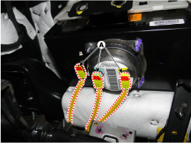 Подсоедините разъем жгута проводов подушки безопасности пассажира к разъему основного жгута проводов SRS.