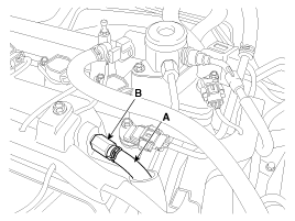 Вставьте тонкую палочку (А) в клапан PCV (В) со стороны резьбы, чтобы убедиться, что поршень движется.