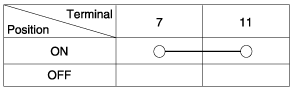 Проверьте целостность цепи между клеммами в полузамкнутом состоянии в соответствии с таблицей.