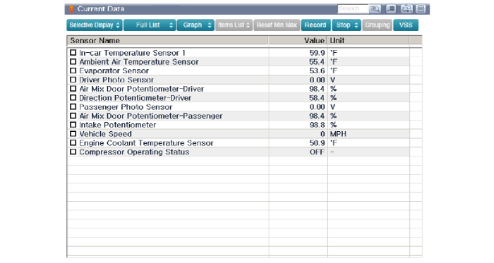 Система отопления, вентиляции и кондиционирования воздуха может быстро диагностировать неисправные детали с помощью системы диагностики автомобиля (GDS).