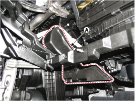 Чтобы снять защитную накладку под крышкой [RH] (A), нажмите на обе стороны стопорного штифта, а затем потяните ее вниз.