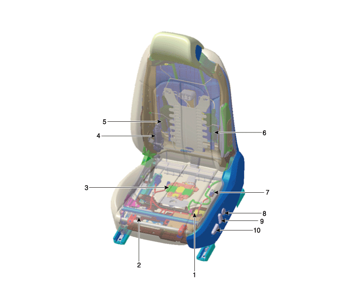 Hyundai Sonata LF 2014-2019 Руководство по ремонту / Электрическая система кузова / Сиденье электрическое / Компоненты двигателя сиденья с электроприводом и расположение компонентов