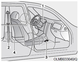 Система предварительного натяжения ремней безопасности состоит в основном из следующих компонентов. Их расположение показано на иллюстрации выше: