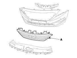Разблокируйте стопорные штифты, нажав на них отверткой или съемником, а затем снимите решетку радиатора (А).