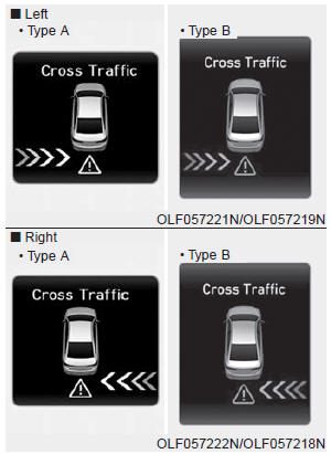 Если транспортное средство, обнаруженное радарами, приближается к вашему автомобилю, предупреждающий звуковой сигнал прозвучит, сигнальная лампа на наружном зеркале заднего вида начнет мигать, и появится сообщение появится на ЖК-дисплее.