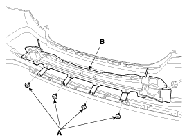 Снимите монтажные зажимы (А), затем снимите балку заднего бампера в сборе (В).