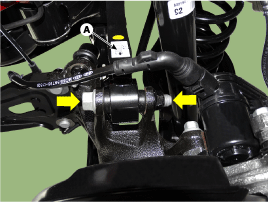 Отсоедините разъем датчика скорости вращения колеса (А).