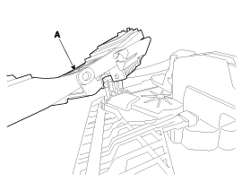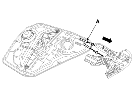 Снимите трос внутренней ручки задней двери (А), надавив на него назад.