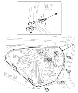 Ослабив крепежные болты, снимите модуль задней двери (В).