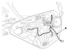Отсоедините разъемы и жгут проводов модуля передней двери (А).