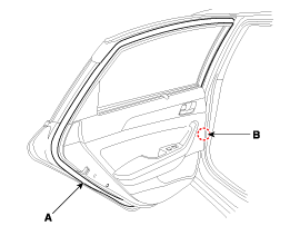 Отсоедините зажимы, затем снимите боковой уплотнитель задней двери (A).