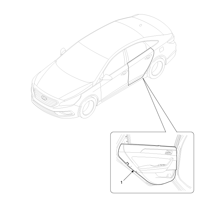 Hyundai Sonata LF 2014-2019 Руководство по ремонту / Кузов (внутри и снаружи) / Задняя дверь / Компоненты обивки задней двери и их расположение