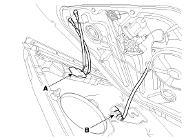 Отсоедините разъем переключателя стеклоподъемника (В).