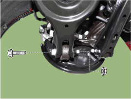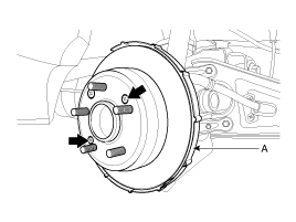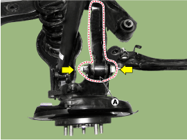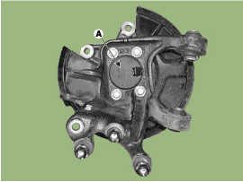Ослабьте крепление подшипника ступицы, а затем снимите подшипник ступицы (А) с поворотного кулака.