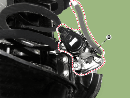 Ослабьте болты крепления нижнего рычага (А) и снимите узел поворотного кулака (В).