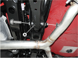Ослабьте болт и гайку и снимите задний нижний рычаг (А) с подрамника.