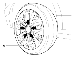 Будьте осторожны, чтобы не повредить колпак колеса (А) при его снятии.