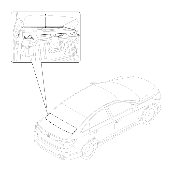 Hyundai Sonata LF 2014-2019 Руководство по ремонту / Кузов (внутри и снаружи) / Внутренняя отделка / Компоненты отделки заднего лотка для пакетов и их расположение