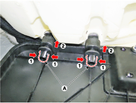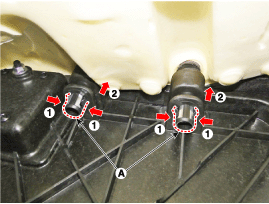 Вытяните направляющие подголовника заднего сиденья (А), зажимая обе стороны нижней части направляющих, и снимите их.