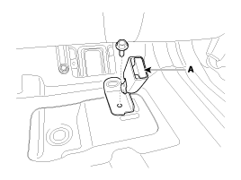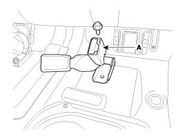Ослабьте крепежный болт и снимите замок заднего ремня безопасности (А).