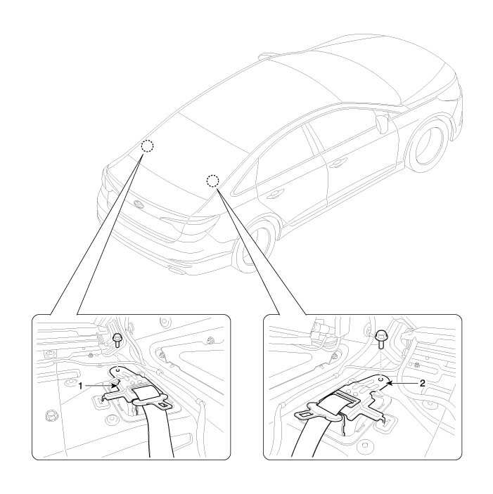 Hyundai Sonata LF 2014-2019 Руководство по ремонту / Кузов (внутри и снаружи) / Задний ремень безопасности / Детали устройства натяжения заднего ремня безопасности и их расположение