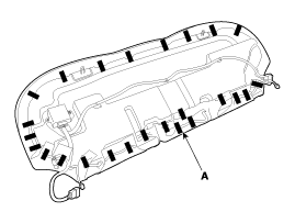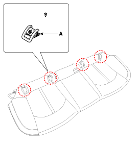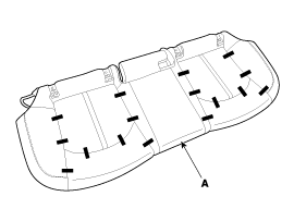 Снимите зажимы на задней части обивки подушки сиденья и снимите обивку подушки заднего сиденья (А).