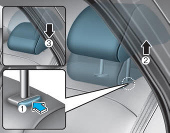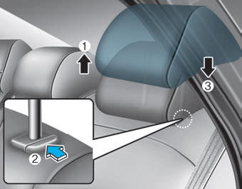 1. Нажмите и удерживайте кнопку фиксатора (2) на опоре подголовника.