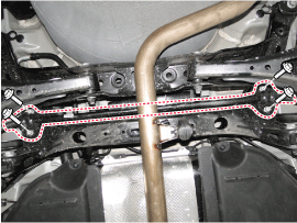 Ослабьте болт крепления и снимите стабилизатор поперечной устойчивости с подрамником.
