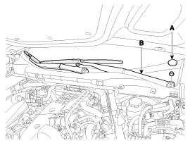 Снимите колпачок (А) и отверните гайки, затем снимите рычаг стеклоочистителя (В).