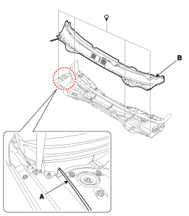 Отсоедините зажимы, затем снимите верхнюю крышку кожуха (B).
