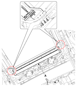 правого бокового кронштейна роликового ножа (A). Будьте осторожны, чтобы не