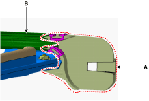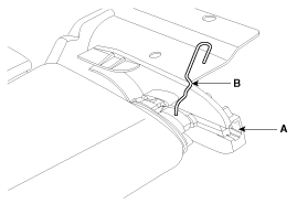 Вставьте фиксированный штифт (B) в отверстие, расположенное внутри паза.